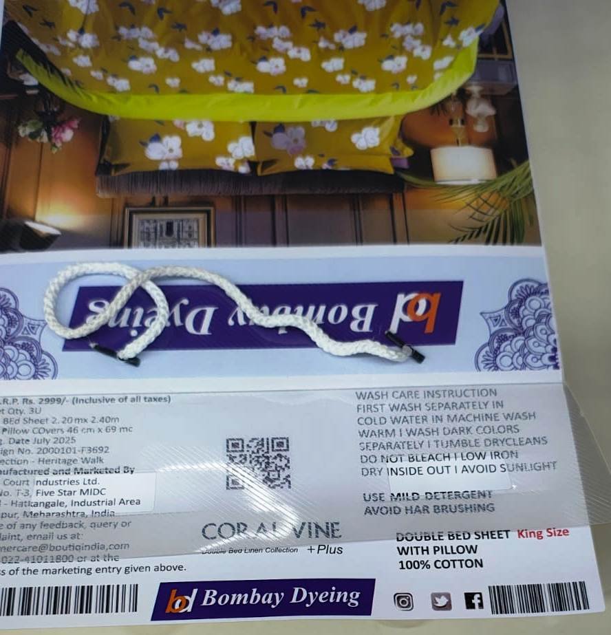 Bombay Dyeing has issued a public advisory after counterfeit bedsheet sets bearing the name “Coral Vine Plus” were found circulating in Kerala. The company confirmed that it does not manufacture or sell any product under this name.