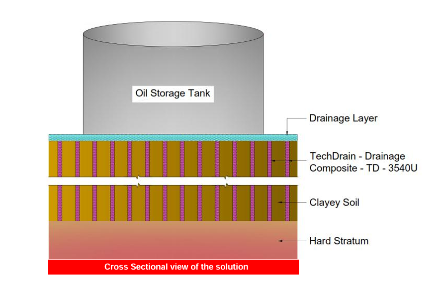 Industrial-scale tanks are large and heavily loaded structures. These tanks are constructed with relatively thin walls that are used for storing fluids. Unforeseen ground deformations can have an undesired impact on the tank and ultimately affecting tank performance and may result in tank failure. Therefore, stakeholders decided to use TechDrain PVD to prevent ground deformations at a later stage.