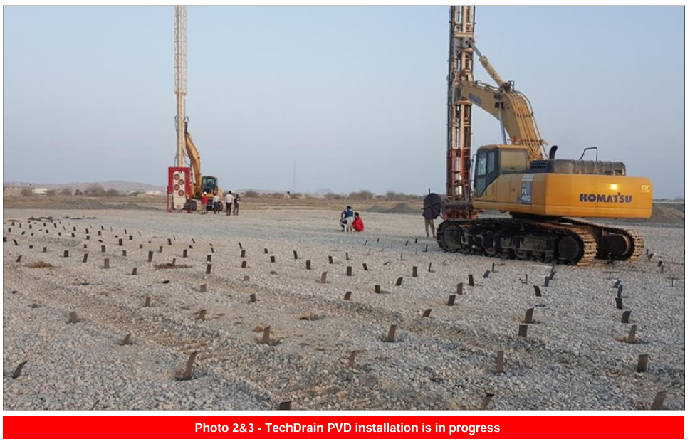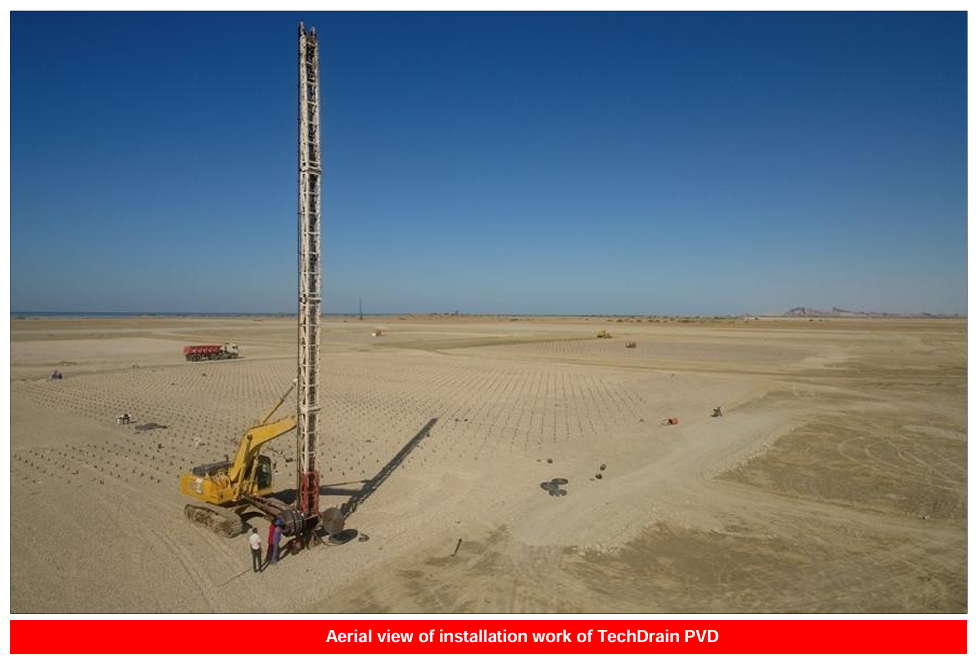 A tailored solution was needed to mitigate excessive deformations and avoid future problems. Nowadays, it is common practice to use TechDrain PVD instead of sand drains for deep soil ground improvement.