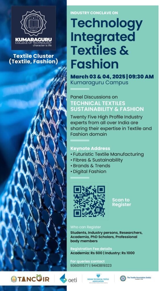 • Shri Shankar Vanavarayar, President of Kumaraguru Institutions, discussed the need for adapting to the fast-changing textile sector and emphasized innovation, technology, and sustainability as the future of textiles.