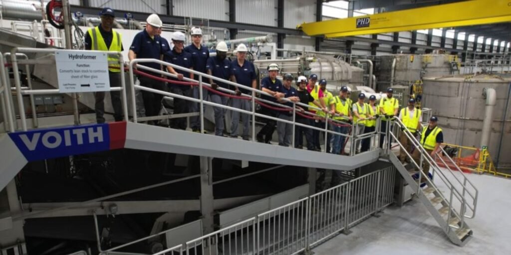 The biggest inclined wire forming in the world, the FiberDry glass mat drier, and a complete Papermaking 4.0 automation solution to boost productivity, machine availability, and product quality are among the technological highlights. Additionally, Voith provided two IntensaPulper machines, which are based on the Process Line Package (PLP) idea. With their energy-efficient technology, PLP has established industry standards in the pulping sector. The 5.5-meter-wide HydroFormer allows for the incredibly homogeneous formation of fibres up to 40 mm in length with a very low stock consistency. When choosing the various parts, Owens Corning gave careful consideration to sustainability and efficiency.