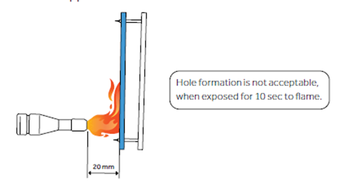 Bottom edge ignition test – Fame applied to the bottom edge of vertically oriented specimens.
