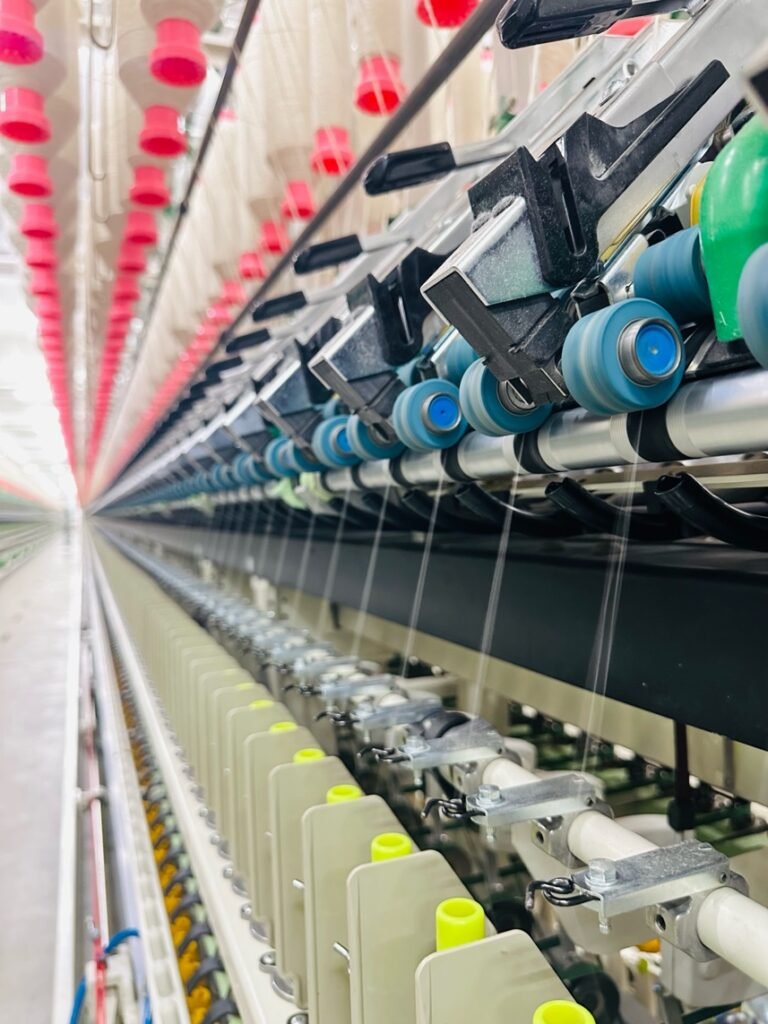 Their latest unit, Aarika Spinning, is a testament to their dedication to high standards & excellence. The facility features color-coordinated beams that match the LMW machines, along with color-coded cans and bobbins for each section, combining functionality with aesthetic appeal.