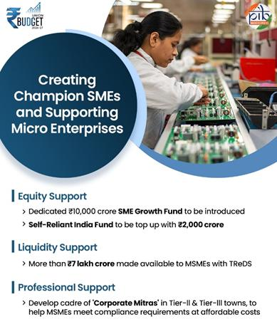 A dedicated ₹10,000 crore SME Growth Fund has been announced to incentivise enterprises based on defined eligibility criteria and support the development of future champions.